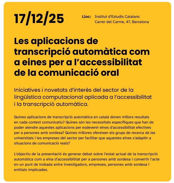 Reserva la data: el 17/12 presentem la recerca “La transcripció automàtica en català, un recurs per a persones amb sordesa?