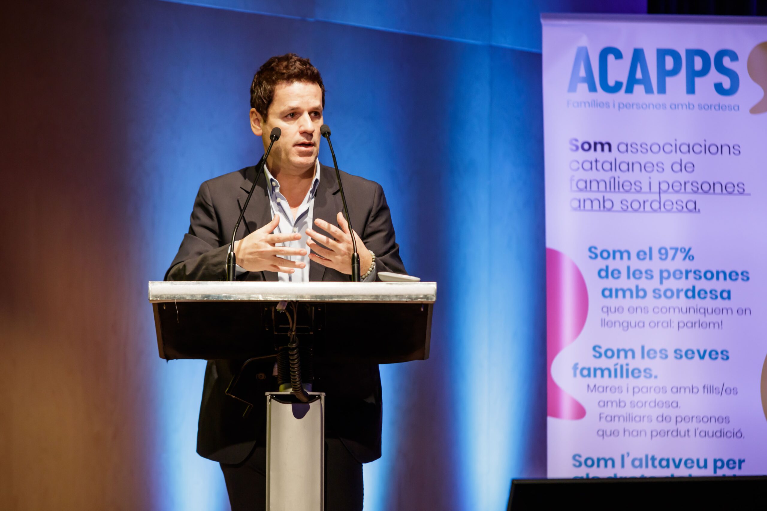 La primera taula rodona de les Jornades de la Federació ACAPPS va centrar-se en l’ampliació de la cobertura universal de les pròtesis auditives. Com a inici, vam poder escoltar l’experiència de França, on des d’aquest any la cobertura d’audiòfons ja és universal per a totes les persones amb pèrdua auditiva (recordem que a l’estat espanyol la cobertura és només fins al 26 anys). Yann Griset, president de Surdi France va explicar el recorregut que ha seguit el moviment associatiu de França per aconseguir aquesta ampliació, a través d’una entrevista gravada en vídeo que va ser emesa en aquesta taula. El debat, moderat per David Prujà, coordinador tècnic de la Federació ACAPPS, va continuar amb Francesc Roca-Ribas, vicedegà de la Facultat de Medicina de la Universitat de Vic; Carles Mundet, subdirector general de Coordinació i Participació en Salut del Departament de Salut; i Carles Campuzano, president de la Comissió de Salut del Parlament de Catalunya.