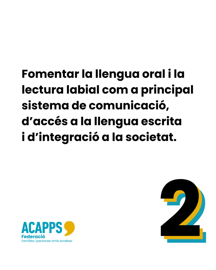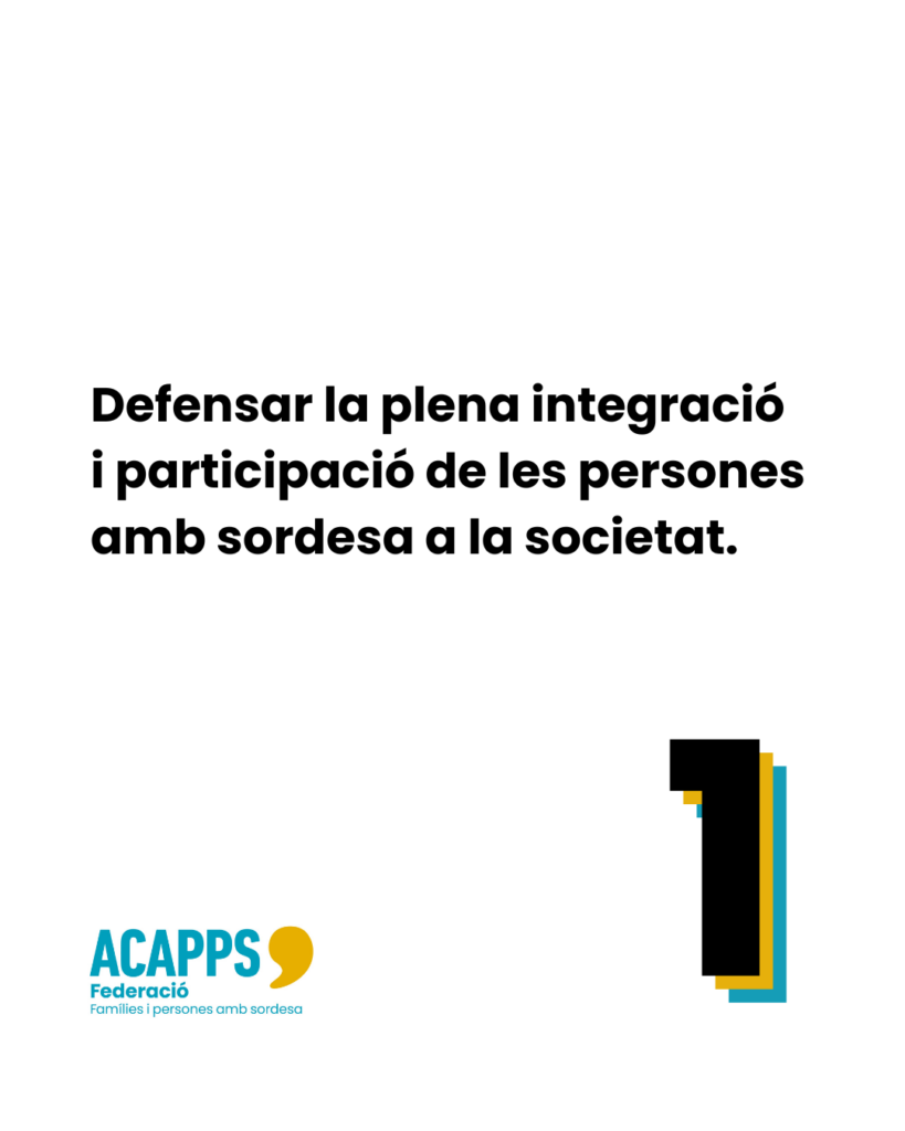 La Federació ACAPPS és interlocutora i referent del sector de la sordesa oralista a Catalunya, i treballa per promoure l’accessibilitat a la comunicació, la plenitud de drets, la no discriminació i la igualtat d’oportunitats, així com la inclusió en la comunitat, l’autonomia personal i la millora de les condicions de vida de les persones amb sordesa i de les seves famílies.