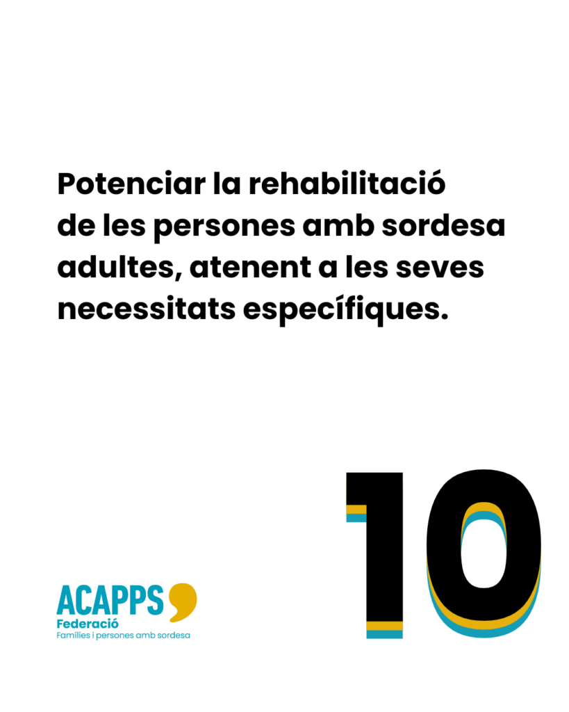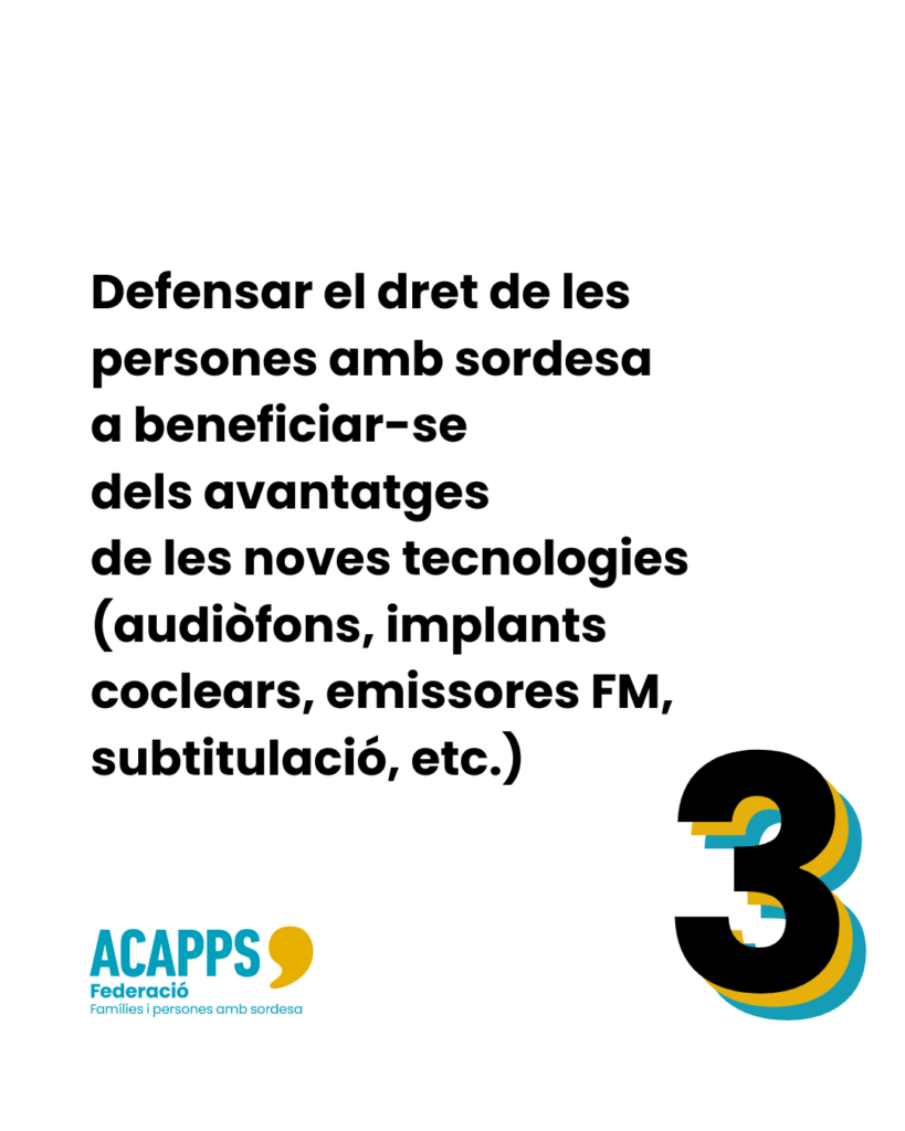 La Federació ACAPPS trasllada davant dels poders públics, els diferents agents i operadors, i la societat, mitjançant propostes constructives —articulades i contrastades tècnicament— les necessitats i demandes de les persones amb sordesa que es comuniquen oralment i de les seves famílies, assumint i canalitzant la seva representació.